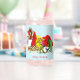 Trois petits dragons qui jouent parmi le casquette rouge Père Noël, des biscuits et un verre de lait dans un décor bleu