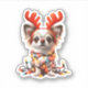 Add a dose of delight to your holiday decor with this adorable chihuahua reindeer sticker! This charming decoration features a chihuahua dog dressed up in a festive reindeer costume, complete with antlers and Christmas lights!