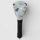 Cute chihuahua dogs in black, brown, tan, cream, grey and blue coats sit and stand scattered dog bones and paw prints on a light blue background.