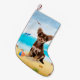 Cute dog sitting on beach is a perfect gift idea for someone who love this dog breed.