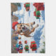 Chihuahua Running in Snow with Christmas Hat Kitchen Towel