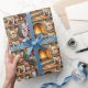 Chihuahua Sitting Fireplace with Christmas Lights Wrapping Paper