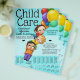 Fully Customizable Child Care 8x10 Flyer is absolutely adorable and utterly unique. Professionally painted and designed. It features hand-painted children flying away with balloons. You can change all the text AND the background colour to really make this personal. Hang on every bulletin board in your area! In the library, deli, post office, pizzeria, park, gym, pediatrician's office etc.
