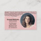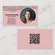 This professional card features an abstract pink and faux rose gold glitter with all text on the front. The back features a pale rose colour and QR code placeholder. Use the QR code link to send clients to a website, photos, reviews or other special location.