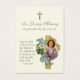 Remember your loved ones in prayer with this beautiful religious image of the Child Jesus holding a dove with a gold crucifix above. All text and fonts can be modified.