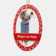 A festive oval shaped Xmas decoration, with a white snowflake and star filled background which frames a two photo template and templates for your personalized message or short verse. CUSTOMIZE IT - Add the name of your daughter, son, niece or nephew and the dates that he or she was part of your family for. IDEAL AS - Stocking stuffers for friends, family, couples and loved ones who have lost a beloved child to an illness or tragic accident.