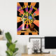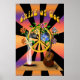 This Child of God Poster influenced by the Woodstock Generation. Show a peace sign garnished with hippy flowers. In the background the earth and moon and in the foreground a classic guitar and burning incense.