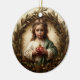 This heartfelt ornament features a tender depiction of young Jesus, robed in white and green, holding the Sacred Heart—symbol of divine love, sacrifice, and compassion. A golden halo encircles his head, while a wreath of olive branches and pinecones frames him in nature’s quiet reverence. Perfect for those who cherish sacred imagery, childhood innocence, and the warmth of spiritual devotion, this keepsake brings holy serenity to any hearth or holiday tree