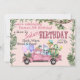 Cute PINK CAMO Safari Kids Birthday - What kid wouldn't love this? Adorable animals in a safari truck - elephant, giraffe, meerkat, alligator and turtle all riding in this pink camouflage pickup truck with jungle vines surrounding the card. During these current times of social distancing to keep our families safe - our kids still want to have their birthday party celebration - So what do we do? Improvise! Throw a Drive By Birthday parade - where friends and family can decorate their cars with balloons, signs or any other way they like (legally) - meet at a location and slowly have a neighbourhood driveby parade - a drop box in the drive way could be placed if folks want to bring gifts, the child can watch from the porch and wave at their loyal fans ... almost like they are royalty . The possibilities are endless and while this is not like any other birthday party for them, it will be memorable and fun. original design by © WhimsicalArtwork™