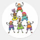 A really cool design of a whole lot of kids who have formed a pyramid. These kids are drawn and they are all wearing different coloured tops. These kids look very bright, colourful and cheerful. This child pyramid design looks great on these stickers. Perfect for yourself or as a gift