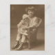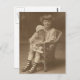 child sitting in chair holding doll post card