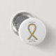 The awareness pin features the painting of a grey and gold awareness ribbon on a custom button pendant. Gold and grey awareness ribbon art lapel pins or buttons can be customized with personalized messages to make great cause buttons for fundraiser pendants for cancer or other causes, awareness pin gifts, or other special pendant events or awareness lapel pin for cause's occasions.