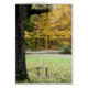Old fashioned rope tree swing abandoned in the fall photograph card.