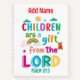 Children Are a Gift from the Lord | Personalized Kids' Spiral Notebook. 🎨 Personalize the cover by adding your child's name at the top—making this notebook uniquely theirs! Choose the inside paper type: Practice lines for beginner writers or dual sketch and practice for doodling/drawings, and writing. Great for: Homeschooling, Sunday school, Travel entertainment, Quiet time, and Creative Bible learning. Makes a beautiful keepsake. Choose your favourite spiral binding colour.