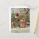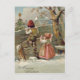 Children Fence Christmas Tree Winter Cottage Holiday Postcard