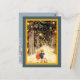 Wish your friends and family Merry Christmas this year with this beautiful vintage image of two children and their little dog in Christmas Lane - a forest lane with Christmas lights hanging from all the trees and sparkling in the night to light the way.