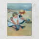 Children on the Beach (1884) by Mary Cassatt captures a tender moment of two children playing by the seaside. The painting features soft, muted colours and gentle brushstrokes that reflect the carefree innocence of childhood. Cassatt's impressionist style brings the tranquil beach setting and the children's interaction to life with subtle charm.