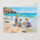 Children Playing on the Beach - Impressionist Art Postcard