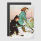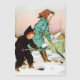 magnetic children shoveling snow vintage Christmas greeting card