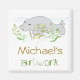 Kid's artwork name template magnet. Square magnet with cute animal drawings and name template area for customization. Cartoon art of a manatee swimming among plant life, done in colour using the paint program. Personalize as a gift for a boy or girl.