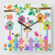 Childrens Birds Birdhouse Scenery Square Wall Clock