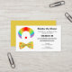 Promote your clown business with these easy to customize business cards. They feature an illustration of a clown "face" though the face area is blank with a rainbow wig, a red clown nose and a yellow polka dot bow tie. Bold black lettering is ready to be personalized with all of your business information and contact details.