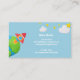 A Daycare Business Card with bright coloured flowers, yellow stars and a butterfly on a blue front. Reverse is designed with a child's toy rocket ship and yellow stars, on a blue background. To personalize, simply insert your details into our easy template, replacing the sample text.