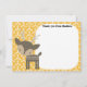 Kids can send their own message of thanks with these woodland animal thank you cards. Use the fill in the blank fields to easily customize the text at the top of the cards. There's space for children to write their own message, make a drawing or dictate their thank you message to Mom or Dad. These cards feature a cute brown buck deer with antlers (or perhaps it's a reindeer) against a dark golden yellow patterned background. These flat panel cards have a spring green patterned back. These cards coordinate with other items in our Woodland Whimsy collection.