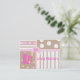 Colourful children's calling card / enclosure card, with polka dots and stripes, in tan, white, and pink. Customize the text areas to personalize for your child.