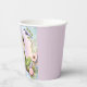 Sip in storybook style with paper cups featuring the serene smile of a frog princess crowned and nestled on a woodland log. Above her, a pastel rainbow bathes the scene in magical light, contributing to the enchanting ambiance. These cups, embraced by a garden of soft-hued florals and friendly creatures, are the perfect vessel for toasting to the wonder of a fairytale or princess-themed celebration.