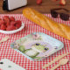 Set the stage for a royal feast with plates that showcase a delightful frog princess, complete with a tiny crown, perched happily on a log within a dreamy garden setting. The background radiates with the soft hues of a pastel rainbow, lending a touch of whimsy to your dining experience. Adorned with tender pink and blue blossoms and cheerful woodland friends, these plates are an idyllic choice for any young monarch's fairytale or princess-themed birthday banquet.