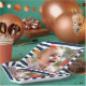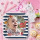 This marine-inspired pattern combines cheerful seashells, bright coral, and playful starfish on a timeless navy stripe background. Customizable with your child's photo and age. Visit the collection to see the rest of the products available and have your perfect coastal and marine party. (Photo courtesy of Zoe Graham from Unsplash).