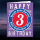 Happy Birthday Child. Bright colours and bold design. Child's birthday card. 3 years old.