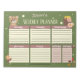 A cute green kid's weekly planner with a bear and woodland theme . Personalized it with the child's name .The days of the week are written in English , but you can replace them in a different language like French , Spanish or German . Simply use the provided template . It is a great way to teach children the days of the week and to stay organized .