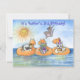 It's party time with Moe the pug, Myrtle the cat, and Hank the mutt as they float happily in a pool dining on the party goodies.