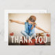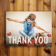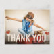 Cute child's "Thank you" photo postcard with cream-coloured text and red hearts. Personalize with your child's photo and add your own text to the back. Great for birthdays or other special occasions.