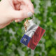 Keychain with the flag of Chile in wavy fabric style design. This design features the Chilean flag colours and design with a beautiful waving material textured effect. This flag design is a great way to show you are proud to be from Chile.