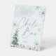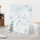 Chili bar sign. Blue winter wonderland baby shower, and bridal shower sign with pine trees and snowflakes.