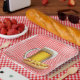 Chili Hot Dog and Beer On Gingham Paper Plate