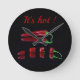 It's hot ! Red hot chili pepper on a black background photo wall clock. The text is customizable.