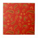 Chili Pepper Red and Lime Green Paisley Pattern Tile
