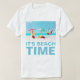 Three red chili peppers on the beach. Hot sunny day, blue sea, white sand, umbrellas and sombreros. Two peppers are drowsy under beach umbrellas, the third one is waistdeep in the water. Every hour is a happy hour at the beach. Sun, Sea, Sand, Sombrero. Funny customizable t-shirt. You can change the image and you can change or delete the template text It's Beach Time. Do not forget to choose another style, gender or colour of the shirt.