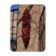 This decorator magnet of dried chili ristras hanging on an adobe wall in Santa Fe New Mexico will be a great addition to your fridge or file-cabinet collection. Get a few extra to share with your Santa Fe loving family and friends.