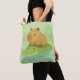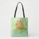 Chill Brown Capybara on Green Crocodile in nature Tote Bag