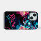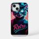 Add a splash of retro coolness to your iPhone 15 with this graphic design featuring a stylish cat in sunglasses and a hat. The neon lighting creates a vibrant look, perfect for showcasing your fun side.