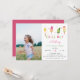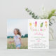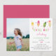 Adorable party invitation's for your little one's summer birthday party feature watercolor popsicle illustrations in vibrant shades of pink and lime green, with "chill out" beneath in whimsical cutout lettering. Personalize with your birthday party details beneath, and add a favourite photo of the birthday girl on the left side. Cards reverse to solid pink.