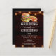 Grilling and Chilling Birthday Invitations. Easy to personalize. All text is adjustable and easy to change for your own party needs. String lights rustic background elements. Fun Chalkboard swirls and flourishes. Watercolor hamburger and hotdog graphics. Invitations for him. Bar or backyard BBQ birthday design. Any age, just change the text.