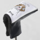 The design features an illustration of a relaxing beagle wearing headphones and blowing pink bubblegum. With your personalized text and favourite background colour, it makes a cute, funny, and unique golf putter head cover.