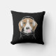The design features an illustration of a relaxing beagle wearing headphones and blowing pink bubblegum. With your personalized favourite background colour, it makes a cute, funny, and unique pillow for dog lovers.