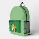 Backpack with illustration of a chimpanzee with green baseball hat, illustration by MaxiHarmony / Radka Kavalcova